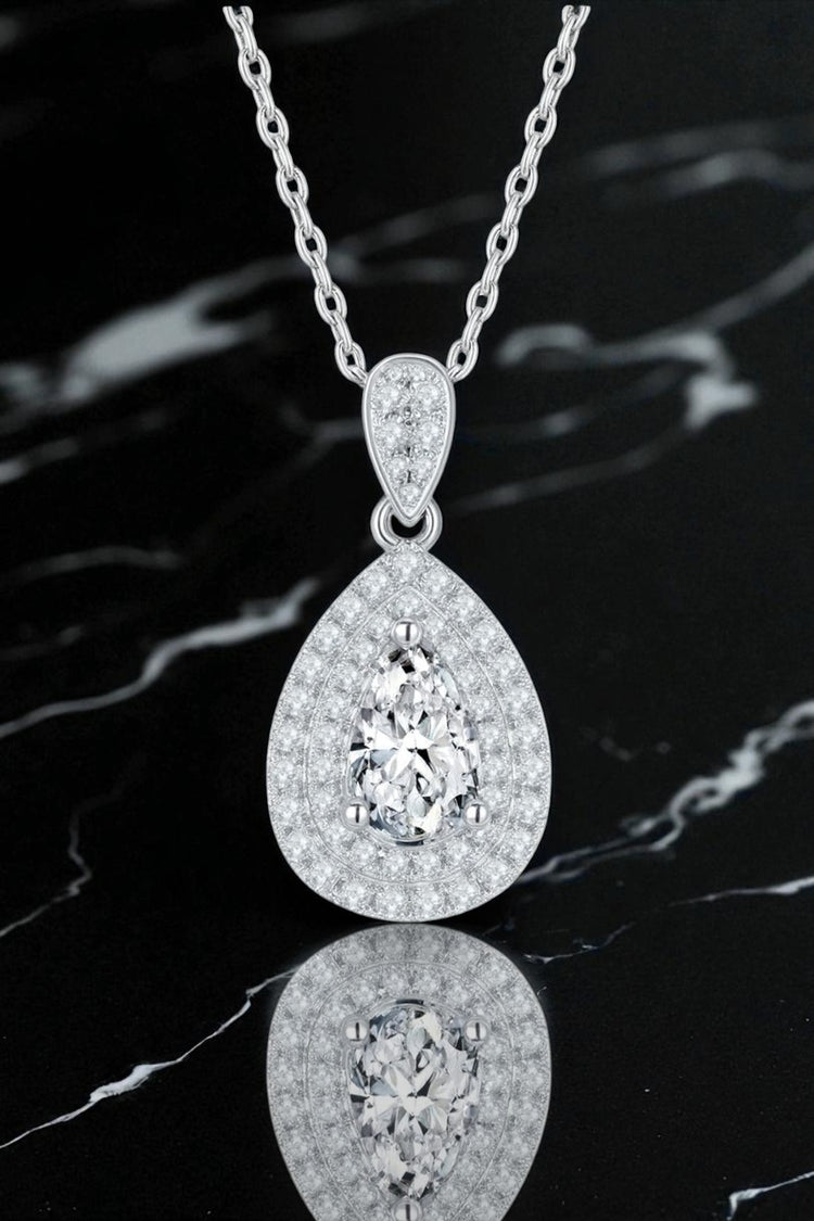 Gracefully elegant, this pendant features a luminous pear-shaped centerpiece embraced by a double halo of pavé-set diamonds, creating a breathtaking cascade of brilliance. The diamond-studded bail adds an extra touch of radiance, making this pendant a symbol of timeless beauty and refined sophistication. Perfect for elevating any look, it embodies both modern glamour and classic allure.