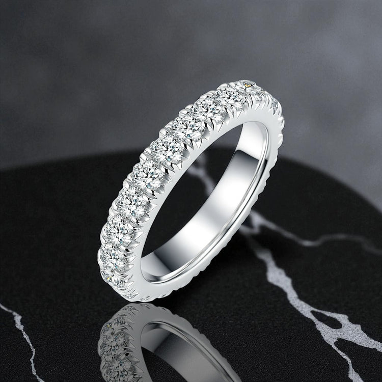 A timeless symbol of everlasting love, this eternity band features a continuous row of brilliant round-cut diamonds set in a polished sterling silver (925) band. Designed to sparkle from every angle, it makes a perfect wedding band, anniversary gift, or elegant stacking ring. A luxurious yet versatile piece that embodies sophistication and grace.