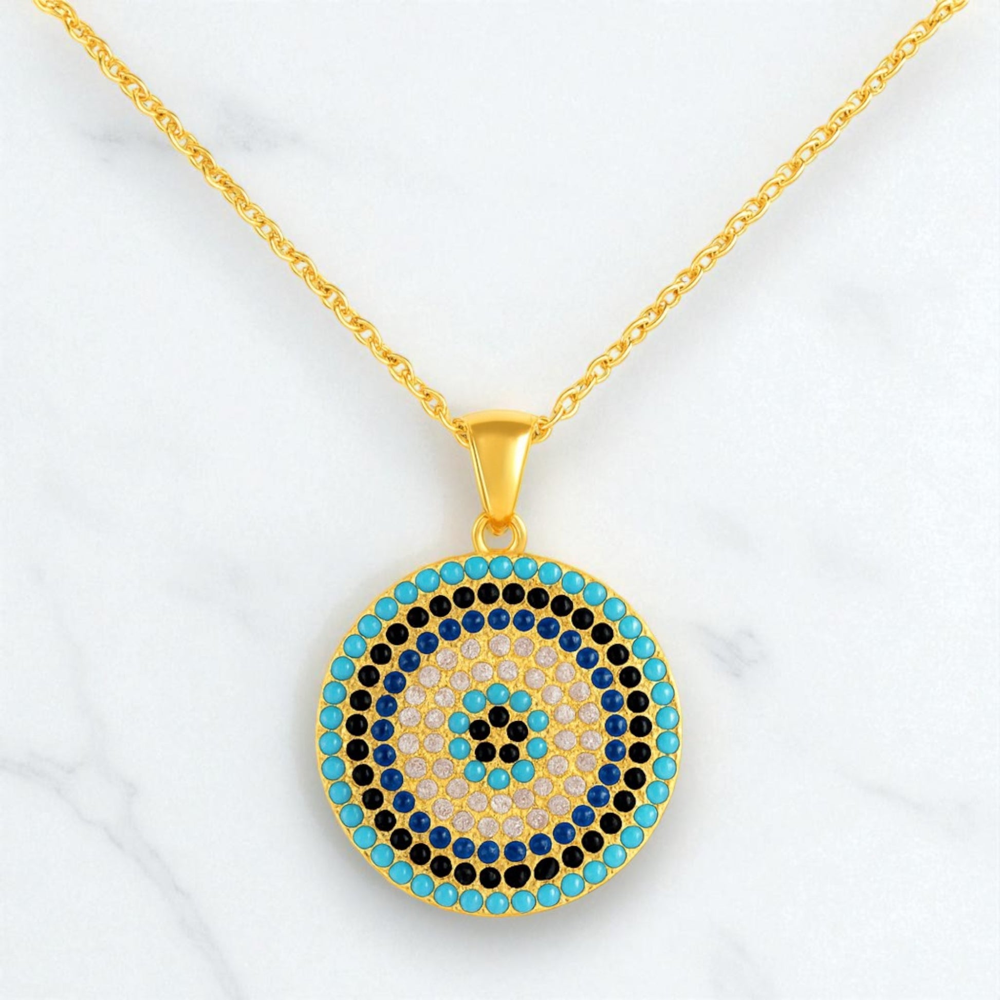 A symbol of protection, strength, and positive energy. This handcrafted pendant features a vibrant Evil Eye design made with blue, black, and white stones set in polished silver. Worn for centuries across cultures, the Evil Eye is believed to guard against negativity and attract good fortune. Stylish on its own or layered, it’s more than a statement β€” it’s a shield.