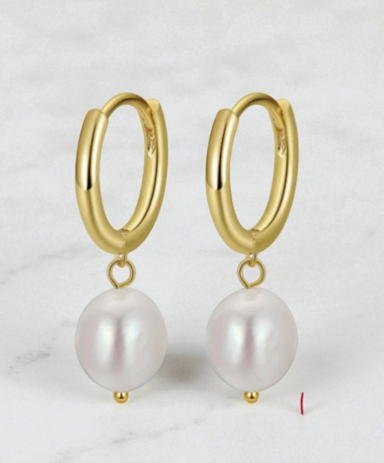 A modern take on a classic. Sleek gold huggie hoops carry luminous freshwater pearls for an effortless day-to-night finish. The hinged closure clicks securely in place and sits comfortably on the lobe; the pearls add soft movement and a subtle glow.