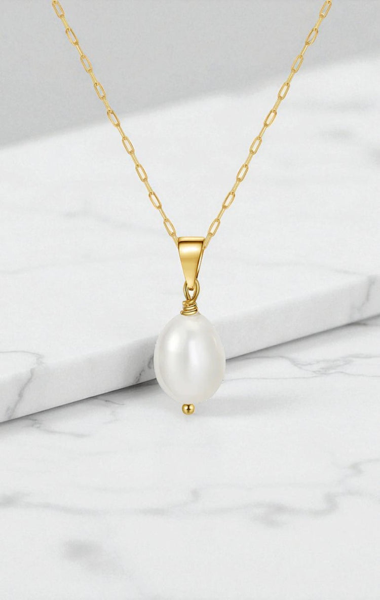 Elegant and timeless, this necklace features a lustrous white pearl delicately suspended from a polished gold chain. A perfect blend of sophistication and simplicity, it’s ideal for both everyday wear and special occasions.
